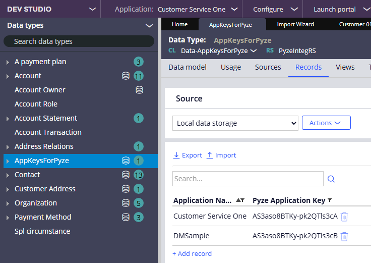 - Open the “AppKeysForPyze” Data type and goto “Records” tab