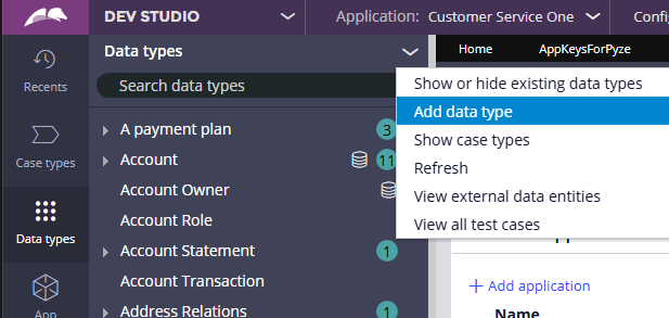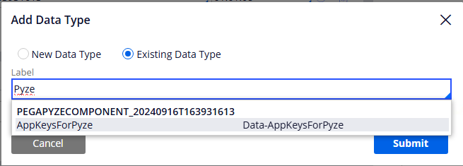 - As you type “AppKeysForPyze” data type should pop up, select it and press submit