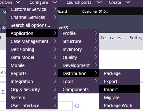 - Go to Configure -> Application -> Distribution -> Import Menu in the Pega Dev Studio